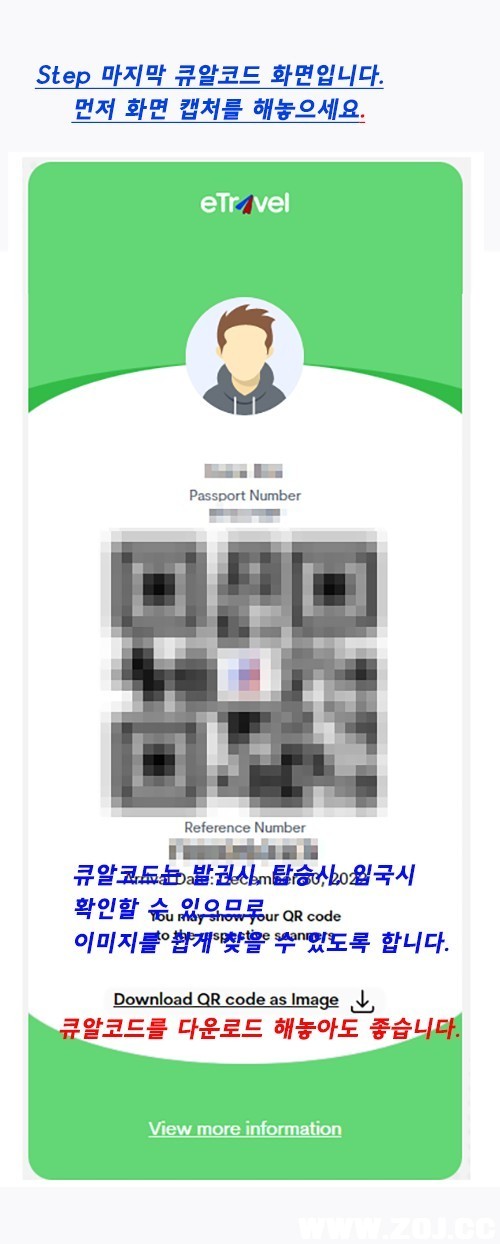 eTravel 등록하면 QR코드가 발급됩니다. QR코드는 화면 캡처 또는 다운로드 받아놓으세요. 항공발권시, 탑승시, 필리핀 클락 입국시 검사해요. 입국신고서